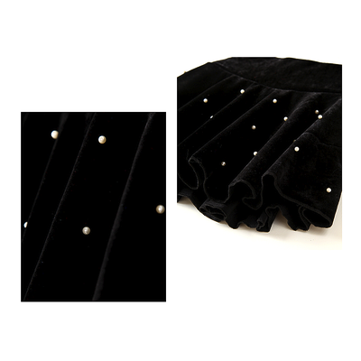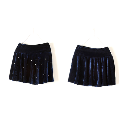 deliciously velvet mini skirts with pearl studs in the front to add that dash of rock glam, built in shorts to avoid peek-a-boo accidents while you rock the dance floor. we're bringing sexy (skorts) back.