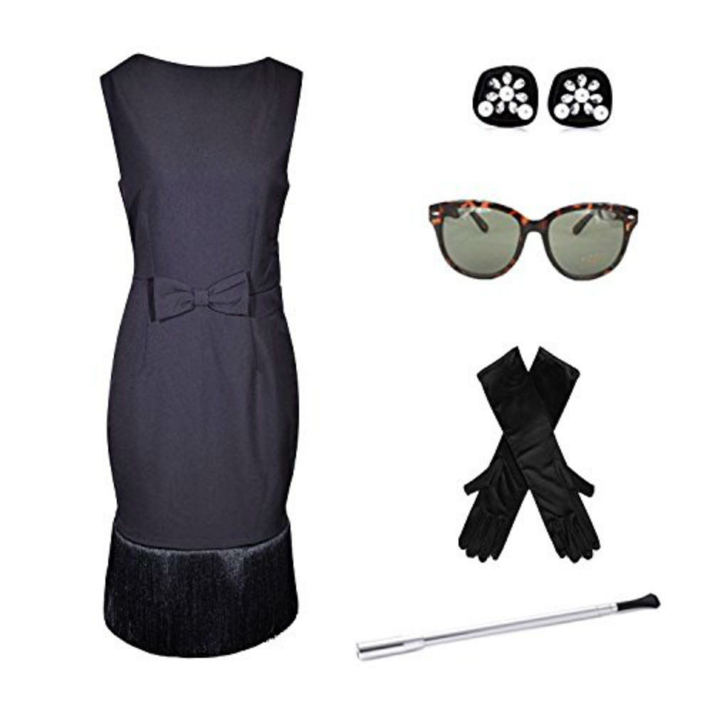 This is a truly high glam, high quality, old fashion, and timeless costume featuring the iconic oversized hat and tassel dress from breakfast at tiffany's. We cannot get enough of Audrey Hepburn's style as Holly Golightly from the movie Breakfast at Tiffany's and just had to recreate these amazing statement earrings and vintage, ultra-chic, cat-eyed, tortoiseshell sunglasses that went so fabulously with her black tassel dress and oversized hat. Shop Hollywood Halloween Costumes Ideas for Women.