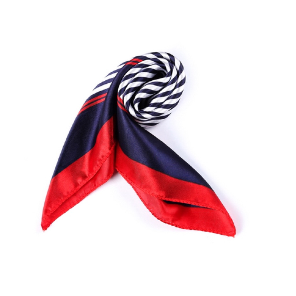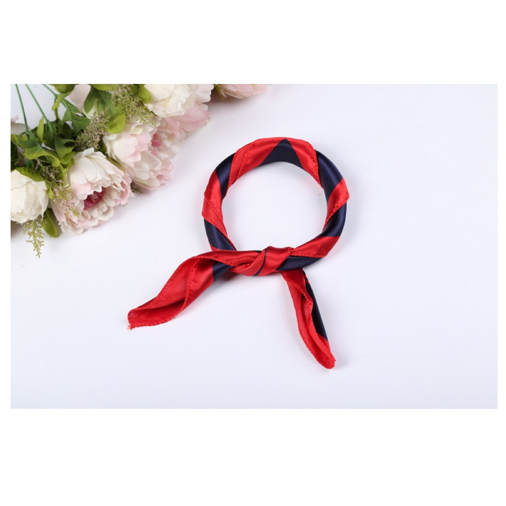 A classic scarf reminiscent to the one Audrey Hepburn worn in her role in the film classic Roman Holidays. Made with high quality satin, this stripe pattern is timeless and adds a dash of euro-sophistication to any outfit.