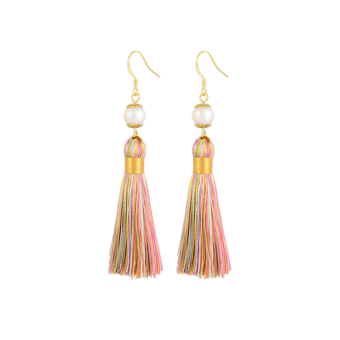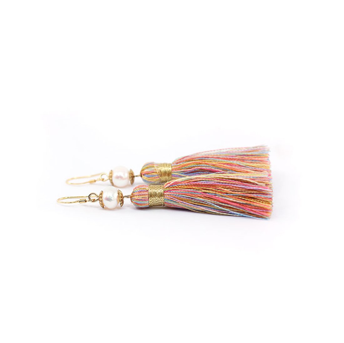Tassels and Pearls-the 100% Handmade Breakfast at Tiffany's Inspired 24karat Gold Plated Earrings in Magic Rainbow