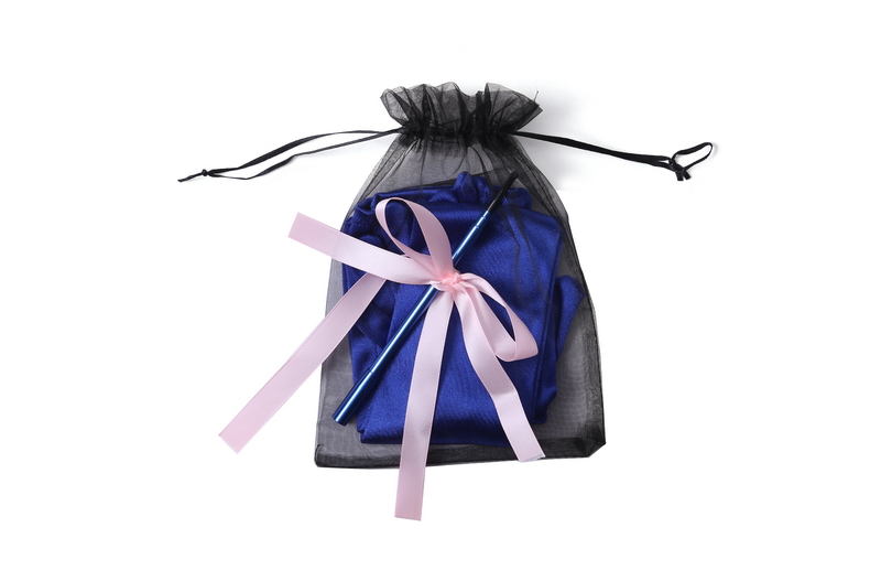 Packaged in chic black satchel bag and pink ribbons