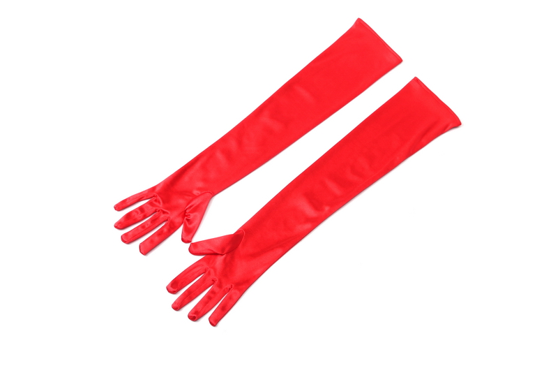 Red Long Satin Elegant Vintage Opera Party Gloves-Vixen Red