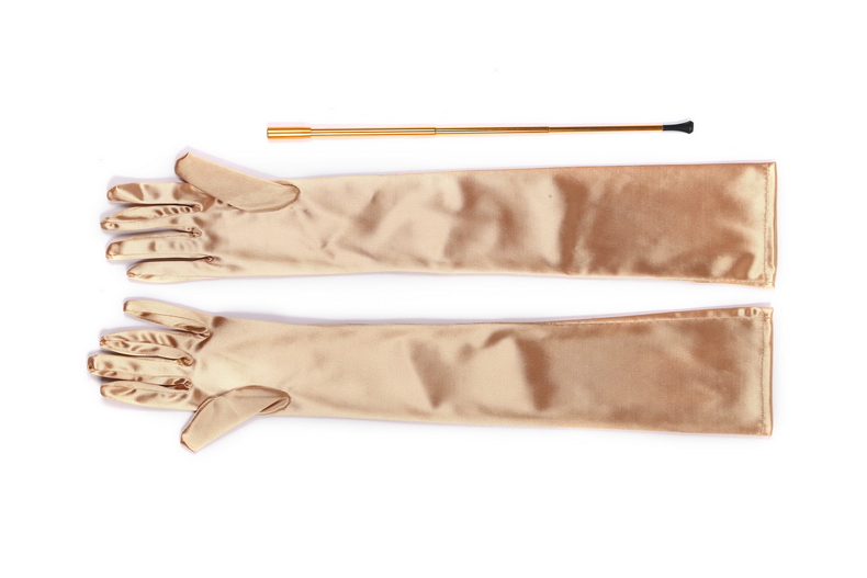 Accessory set include: Fully functional 20s flapper-style long cigarette holder and Fancy All Occassion Long Satin Gloves