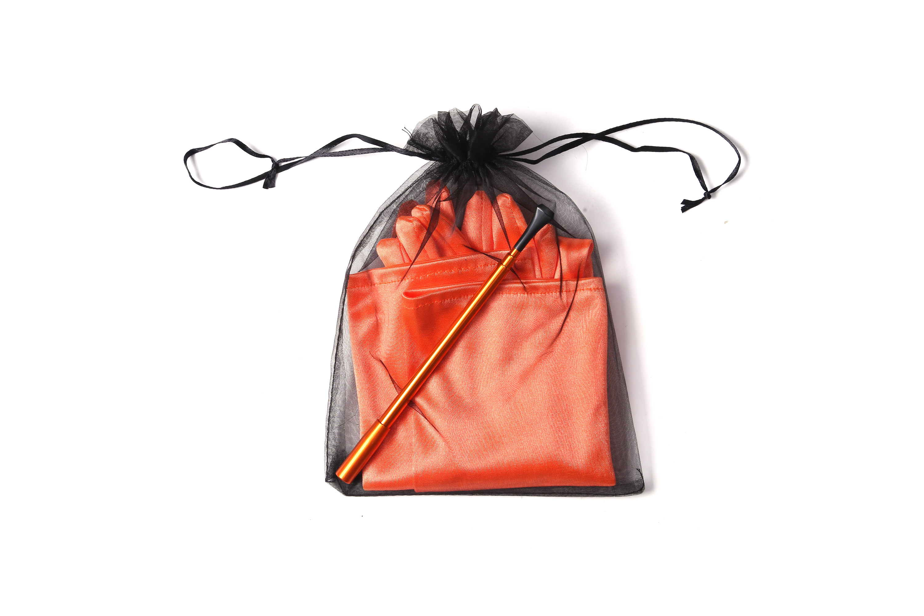 Accessory set include: Fully functional 20s flapper-style long cigarette holder and Fancy All Occassion Long Satin Gloves