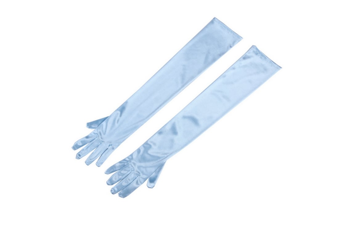 Home - Blue Long Satin Elegant Vintage Opera Party Gloves- Cinderella Blue