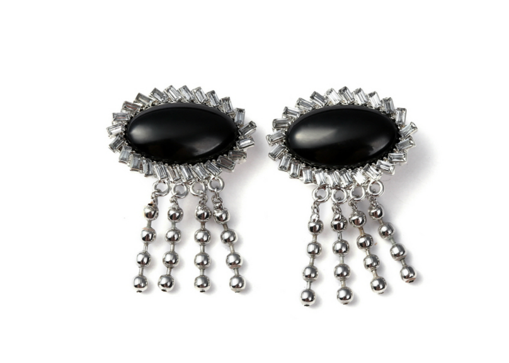 Earrings: length 1.3” width 1.1” Bead Tassel 1”