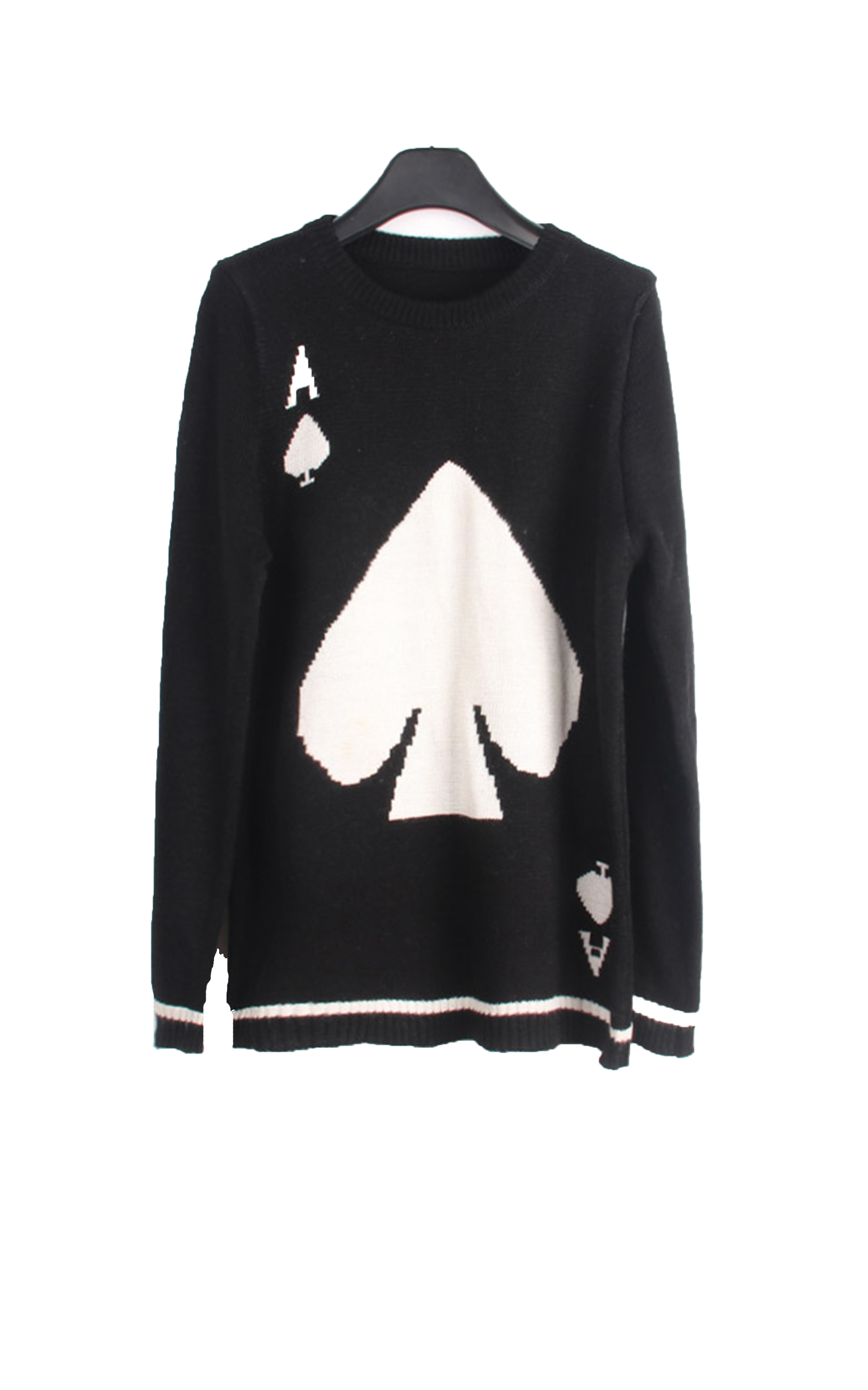 be at the top of your game in this comfy and roomy ace of spades sweater.